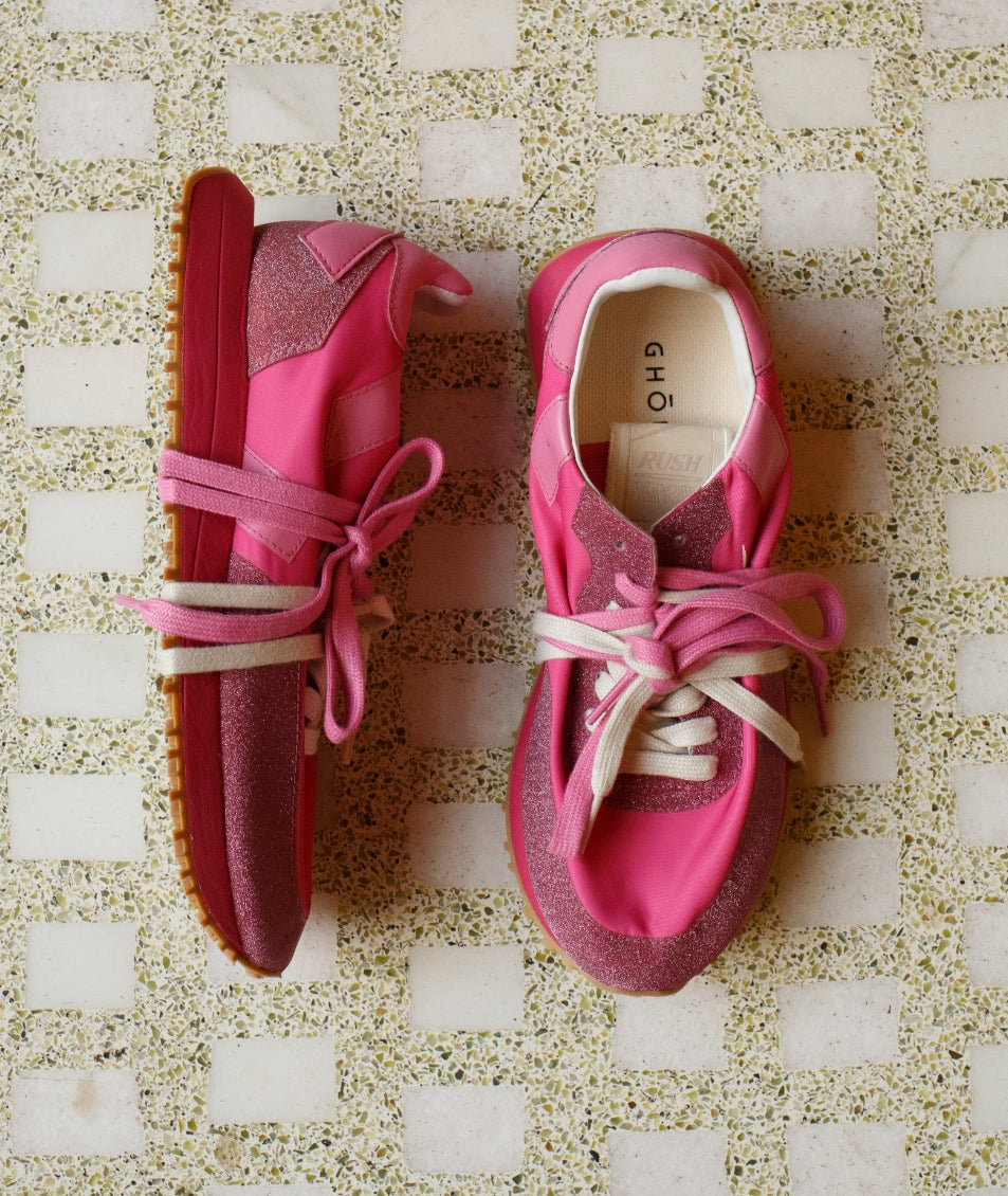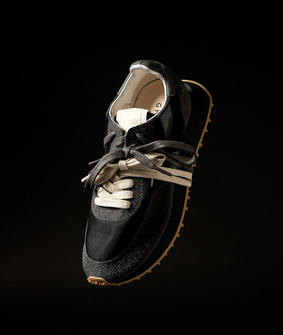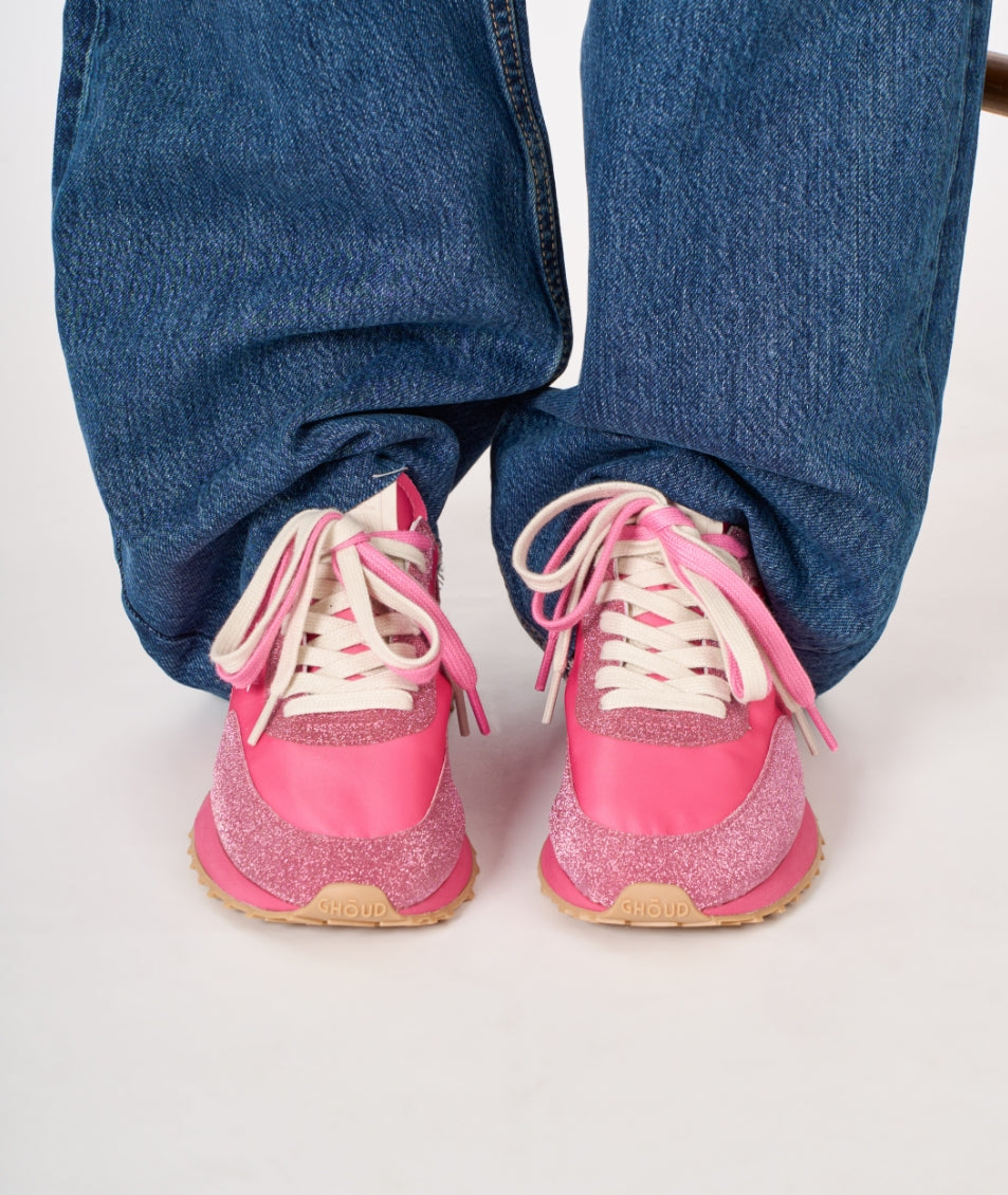 A lively, refreshing, and irresistibly indulgent experience. Shimmering colors, like scoops of freshly made ice cream, add an unexpected touch. The nylon upper in vibrant hues and soft structure, adorned with glitter, blend seamlessly with the originality of the contrasting double laces, creating a unique and dynamic look while ensuring comfort and adaptability with every step. This is the Rush Monoblock Glitter.
